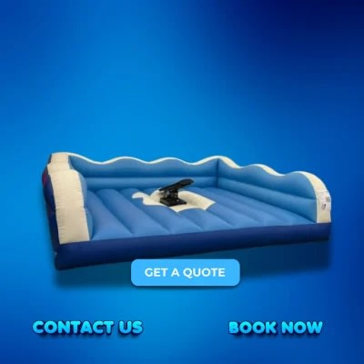 The surfing simulator comprises a inflatable, wave-themed bouncy base, with a solidly-mounted rocking surf board in the middle. Like all of our units it is regularly tested, cleaned and inspected, and is covered by our £10m public liability insurance. Our surfing simulator for hire is powered by a normal household 13amp plug socket, and we can supply a generator if your party is outdoors or away from a power supply.